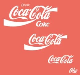 For example, the Coke logo goes from “Drink Coca-Cola / Coke” to “Coca-Cola” to “Coca-Cola minus the curved line to “Coke”.