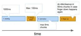 Web performance targets: page load of 1000ms, click response of 100ms, frame rate of 60fps with 6ms of work per frame, and 50ms of post-animation work