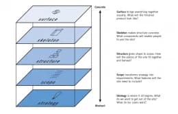 User experience begins with strategy and requires layers of feature scope, site structure, site skeleton, and “surface” or the graphic interface